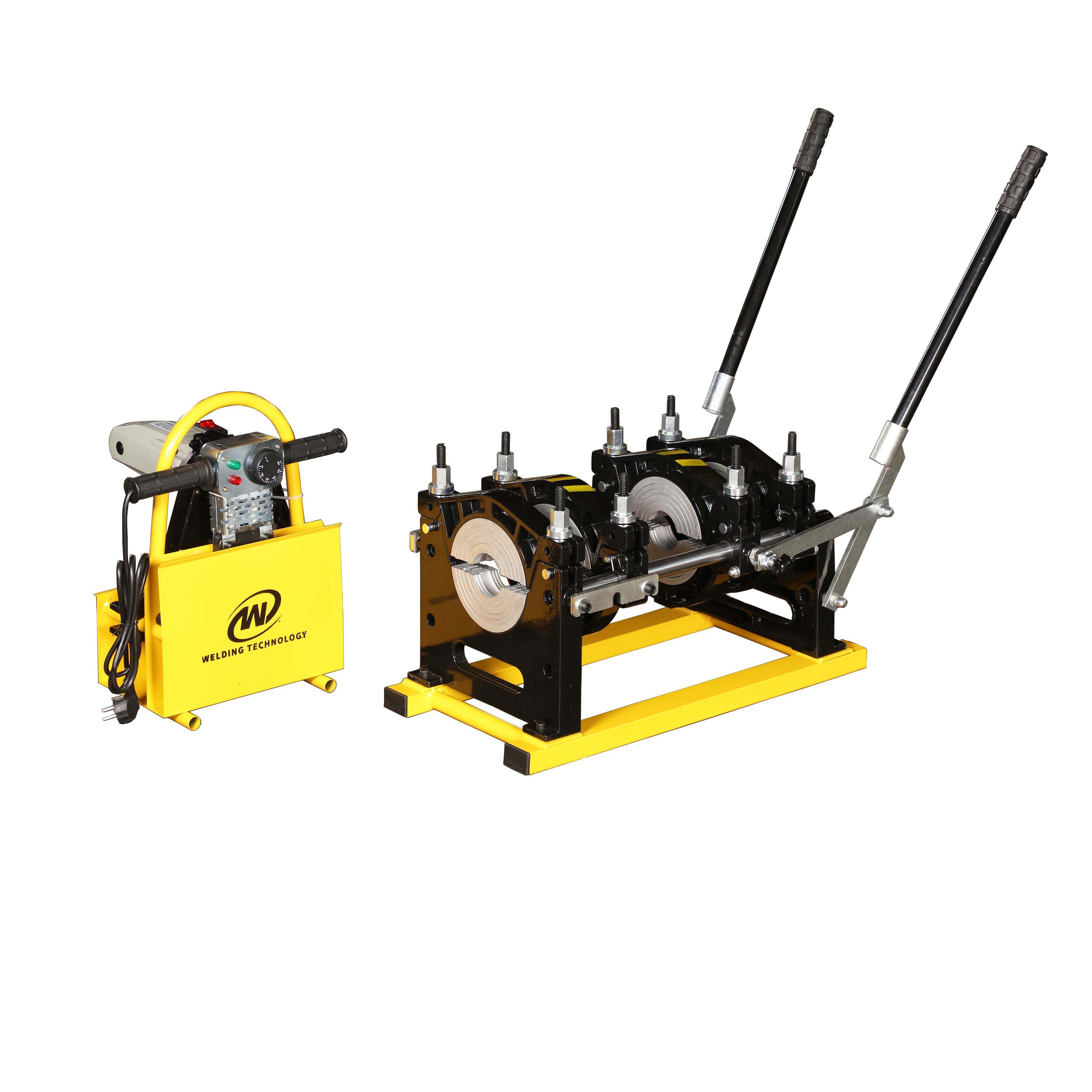 La máquina manual de soldadura a tope por fusión consta de tres componentes clave: la herramienta de fresado (escariador/faceador), la placa calefactora, el bastidor básico y el soporte.