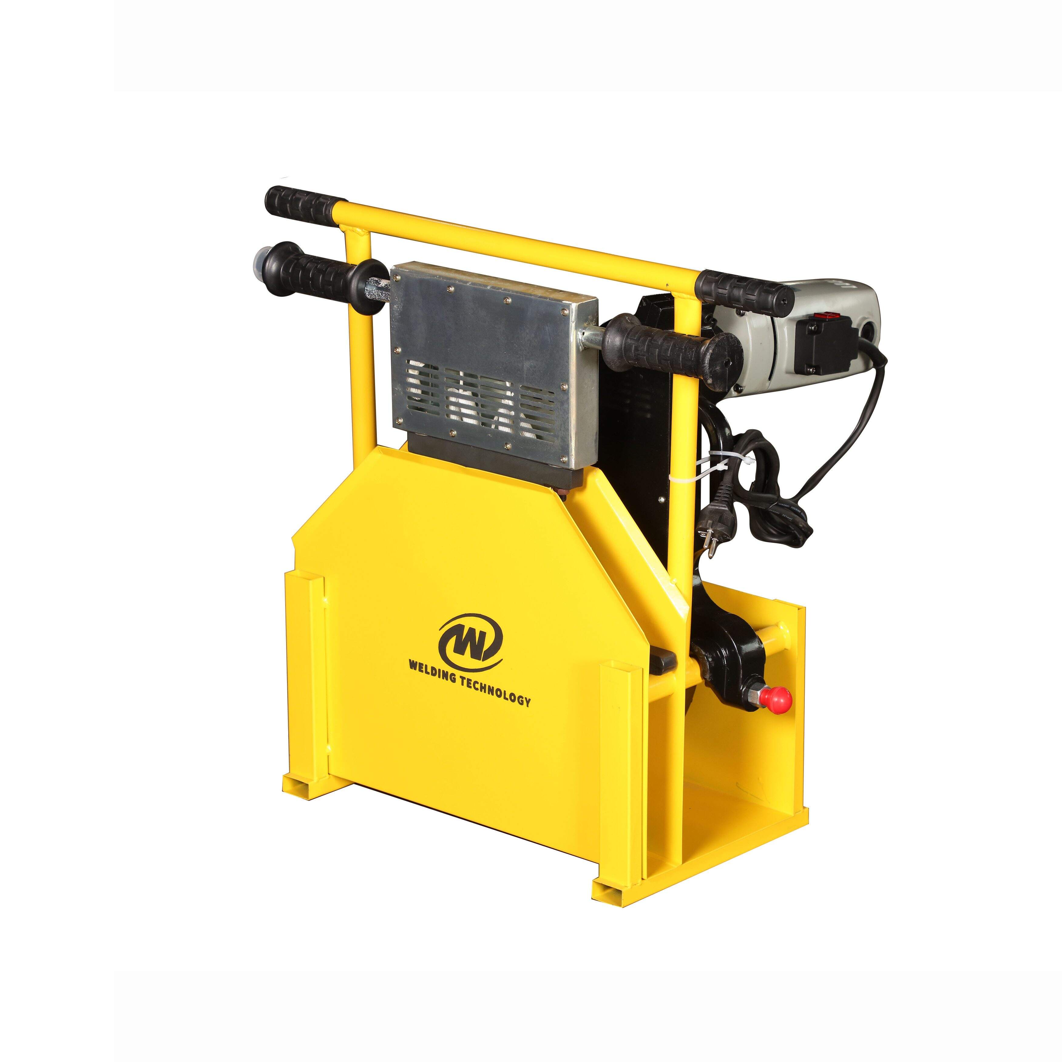 Está compuesto por el bastidor básico, la herramienta de escariado, la placa calefactora, la unidad hidráulica, el cable de la placa calefactora y el soporte. Está fabricado con materiales ligeros y de alta resistencia, con un ángulo de apertura de la abrazadera de 45° para facilitar su operación. Una baja presión de arranque garantiza una soldadura estable de tubos de pequeño diámetro; las posiciones de soldadura seleccionables permiten realizar diversos tipos de soldaduras de accesorios. Cuenta con una placa calefactora recubierta con teflón extraíble y control preciso de la temperatura; como opción, incluye una herramienta de escariado eléctrica con interruptor de seguridad que evita el arranque accidental.